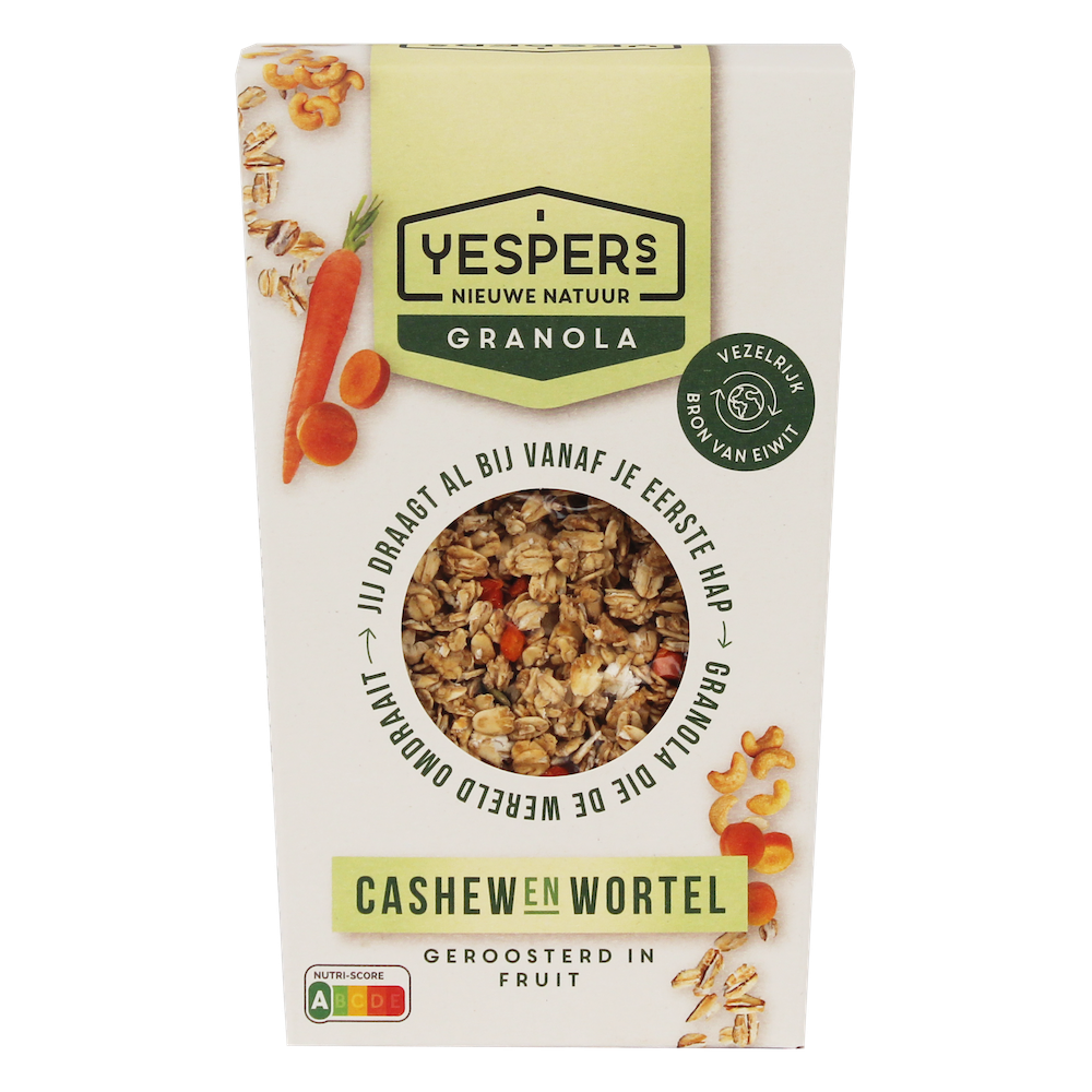 De granola Cashew en Wortel klinkt als een hele bijzondere combinatie en dat is het ook maar veelal door de cashew.